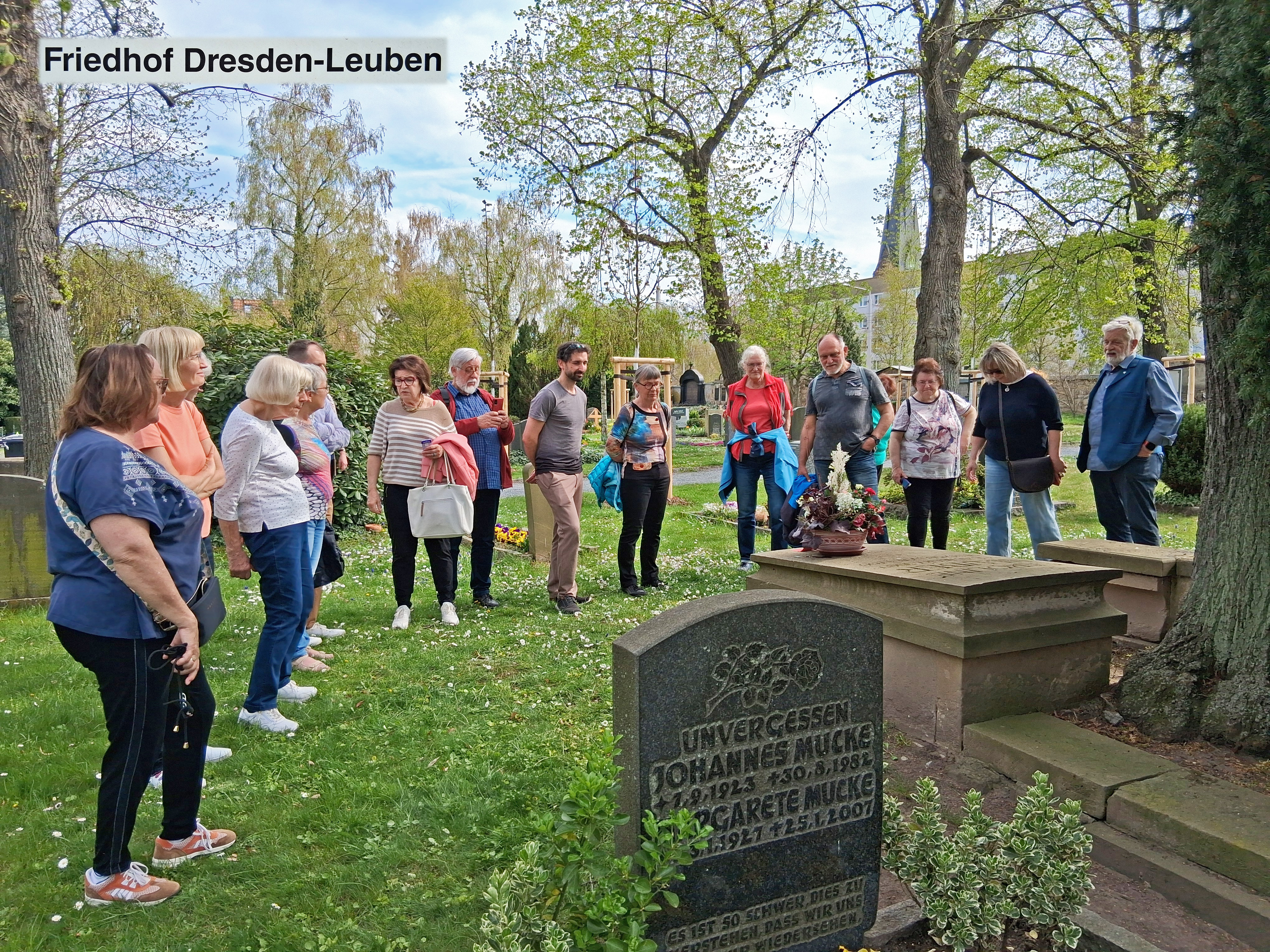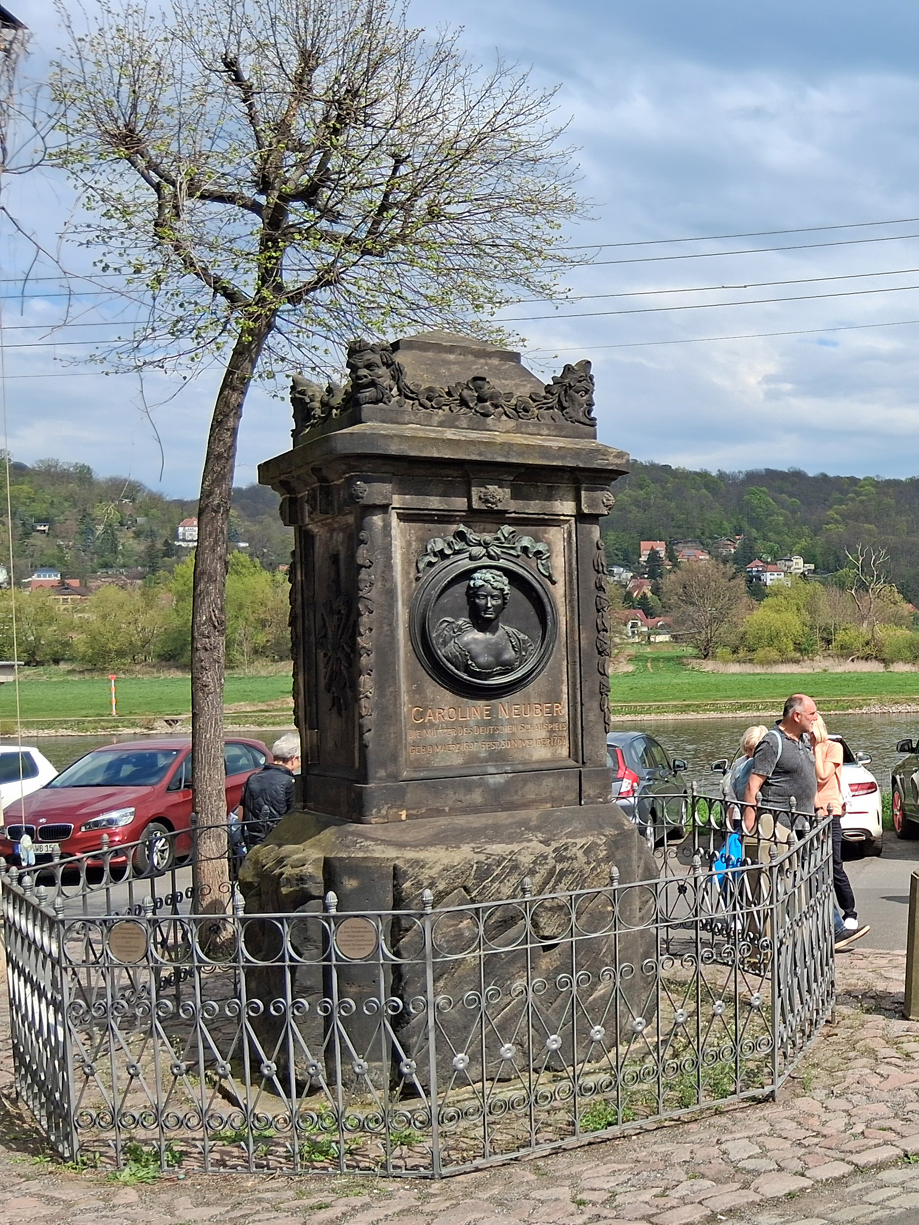 „...errichtet von ihren Freunden und Verehrern im Jahr 1776“ – so steht es auf dem Gedenkstein für Friederike Caroline Neuber (1697-1760) in Dresden-Laubegast, unweit ihres Sterbehauses, wohin uns unser Ausflug am 18.04.2026 anlässlich des 35-jährigen Jubiläums unseres Fördervereins führte.