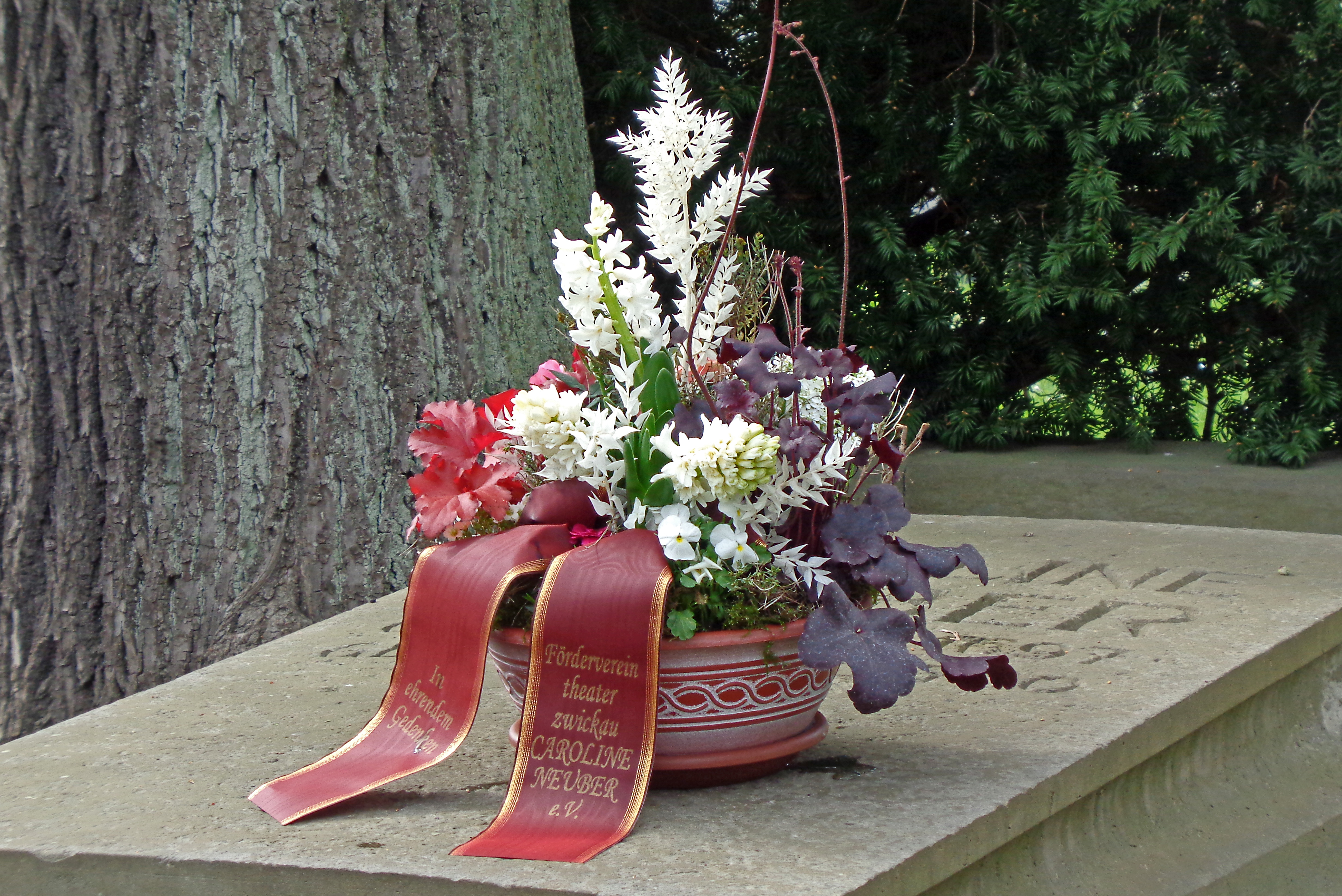 Bei schönem Wetter starteten wir am Zwickauer Gewandhaus – unweit von dem Gedenkstein, der auch dort seit Jahren auf die „GROSSE DEUTSCHE THEATERREFORMERIN“ – die Namensgeberin unseres Vereins – hinweist. Nach einer gemütlichen Busfahrt bis zum Volkshaus Laubegast, wunderschön direkt an der Elbe gelegen, und einem sehr leckeren Mittagessen versammelten wir uns alle vor dem Gedenkstein für ein Foto. Nach einem kleinen Spaziergang bzw. mit dem Bus erreichten wir dann den Friedhof Dresden-Leuben, wo wir an dem schön gepflegten Grabmal eine Einpflanzung mit einer Widmung durch unseren Verein abstellten. Auf dem Weg zum Bus stand dann zufällig noch eine Eisdiele im Weg – und dann ging es voller Eindrücke wieder zurück nach Zwickau. Ein gelungener Ausflug – eine würdige, angemessene Ehrung – und Gelegenheit, sich untereinander auch etwas besser kennen zu lernen.