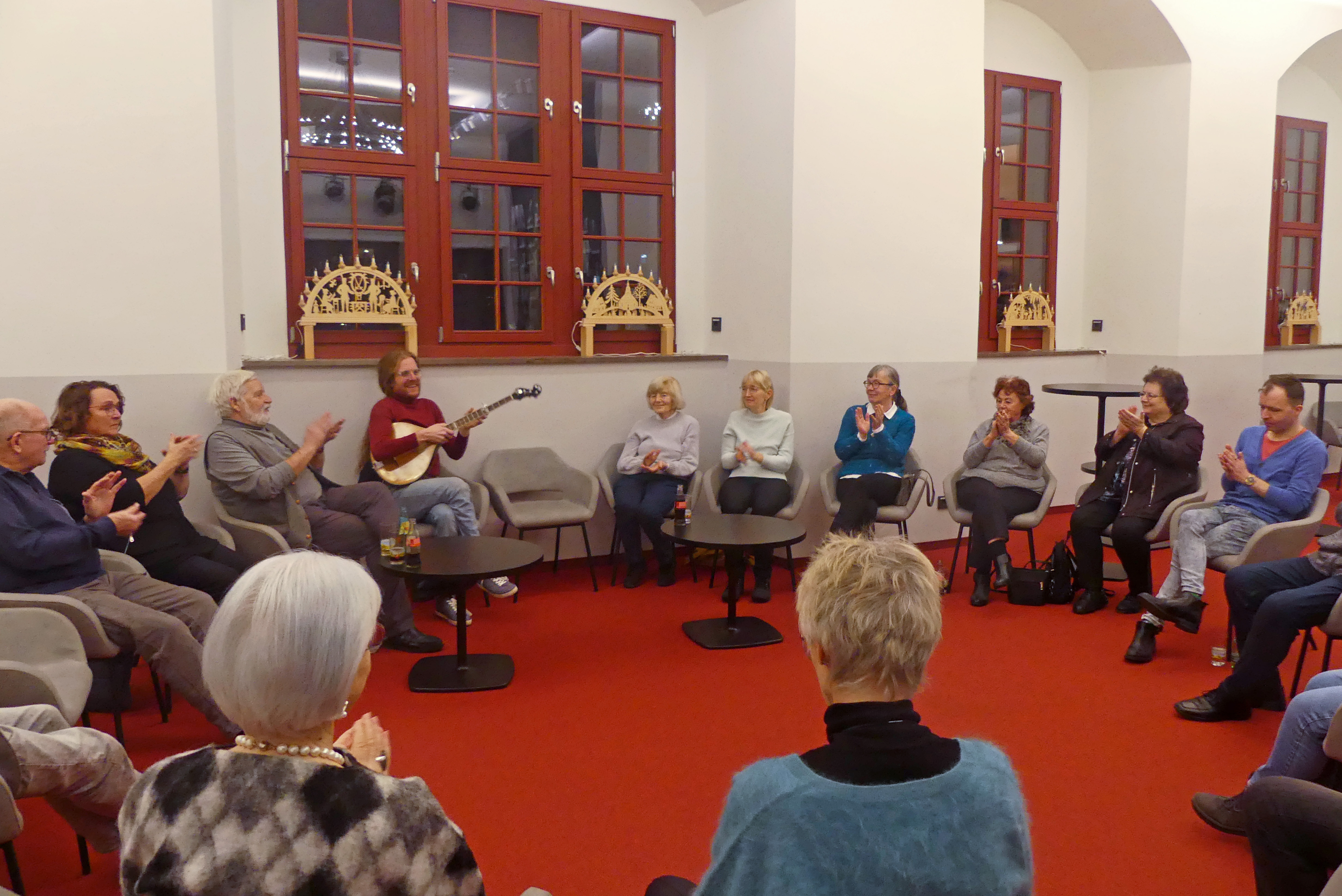 Mit dem amerikanischen Lied „The cuckoo“ zum Banjo verabschiedete sich Gabriel Wernick von den trotz des Streiks im ÖPNV zahlreich erschienenen Vereinsmitgliedern und Gästen, die ihm mit großem Applaus für den unterhaltsamen Abend dankten.