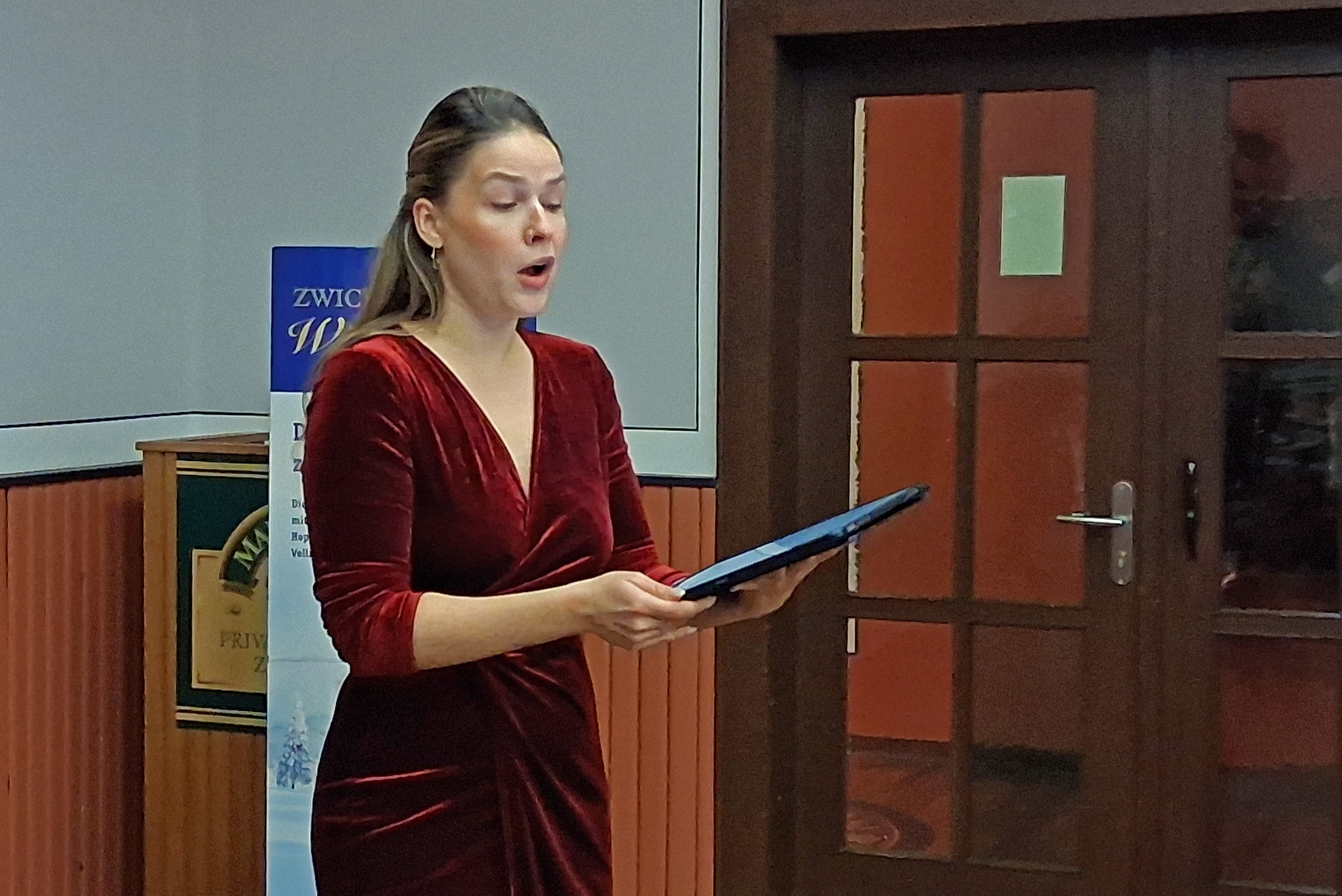 Schon zum vierten Mal führte uns Anne Sandmann durch ein kleines Programm. Zu Gast war – neben Matthias Spindler – die junge Sopranistin Natalia Willot-Förster. Nach „Oh holy night“ berichtete uns Natalia Willot-Förster, wie sie auf einer Zugfahrt nach St. Petersburg von der Direktorin einer Musikschule entdeckt wurde. Zu den weihnachtlichen Traditionen in ihrer Heimat befragt, meinte sie, zu Essen gibt es „alles mit Mayonnaise“. Und eigentlich wurde früher in der Sowjetunion erst am 07.01. Weihnachten gefeiert. Dafür aber ganz groß das neue Jahr begrüßt. Mit „Maria durch ein Dornwald ging“ endete das kleine festliche Konzert unter großem Applaus aller Anwesenden.